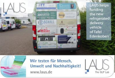 The volunteers at Tafel Edenkoben (food bank) are doing great work supplying many people in need not only with food but also with furniture, clothes and toys. A new refrigerated delivery vehicle has been acquired in order to transport cooled goods. Funding was made possible by advertisements on the autobody. We at LAUS gladly support their work with an advertisement.